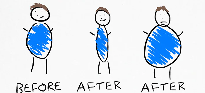 从上述分享中,不难总结出复胖的原因,除了体现在饮食和运动,还有心态问题。为了迅速掉秤,有一些减肥人士把“少吃”默认成“节食”,轻则不吃碳水,重则干脆不进食,而这恰恰就是肉肉重新找上你的根本原因。UCLA曾发布过一个研究结果:在依靠节食减肥成功的参与者(在六个月内成功减掉自身体重5-10%)中,有近三分之二的人,在5年内发生反弹甚至比初始状态更重。