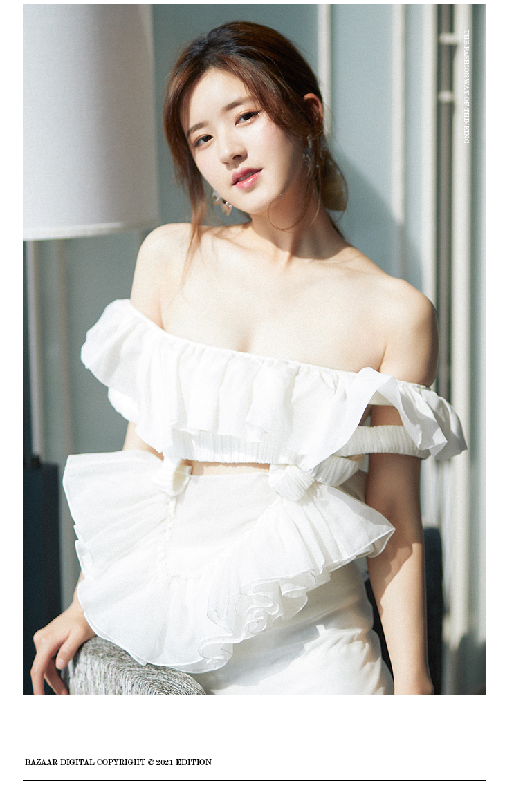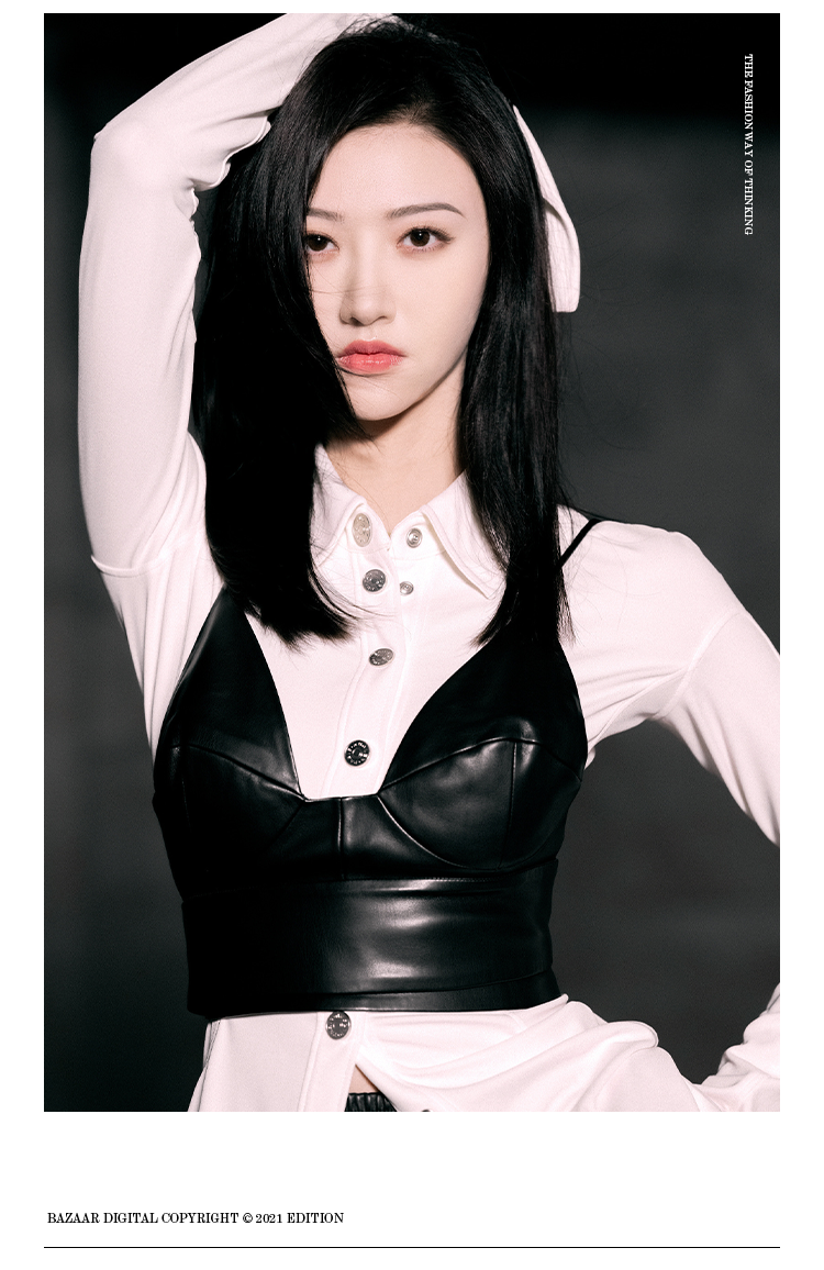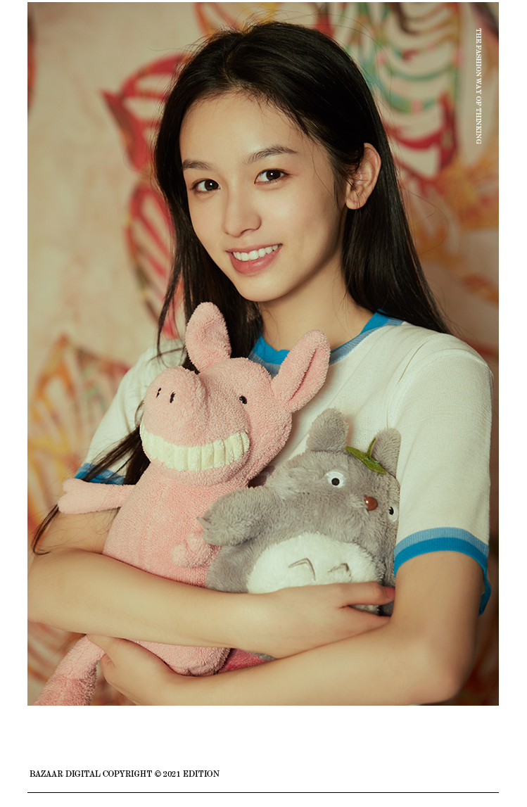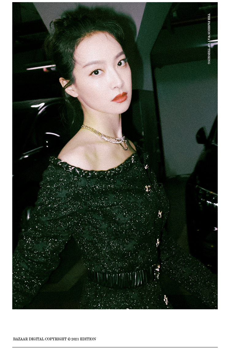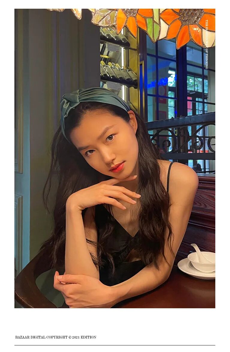 四六分的刘海刚好能遮住额头的棱角,四分的那侧刘海稍稍别在耳后,柔美感呼之欲出。