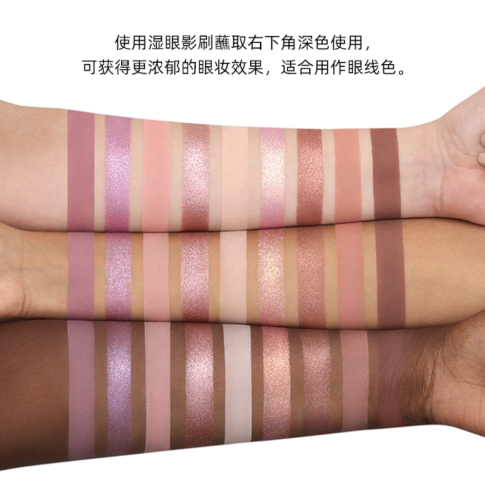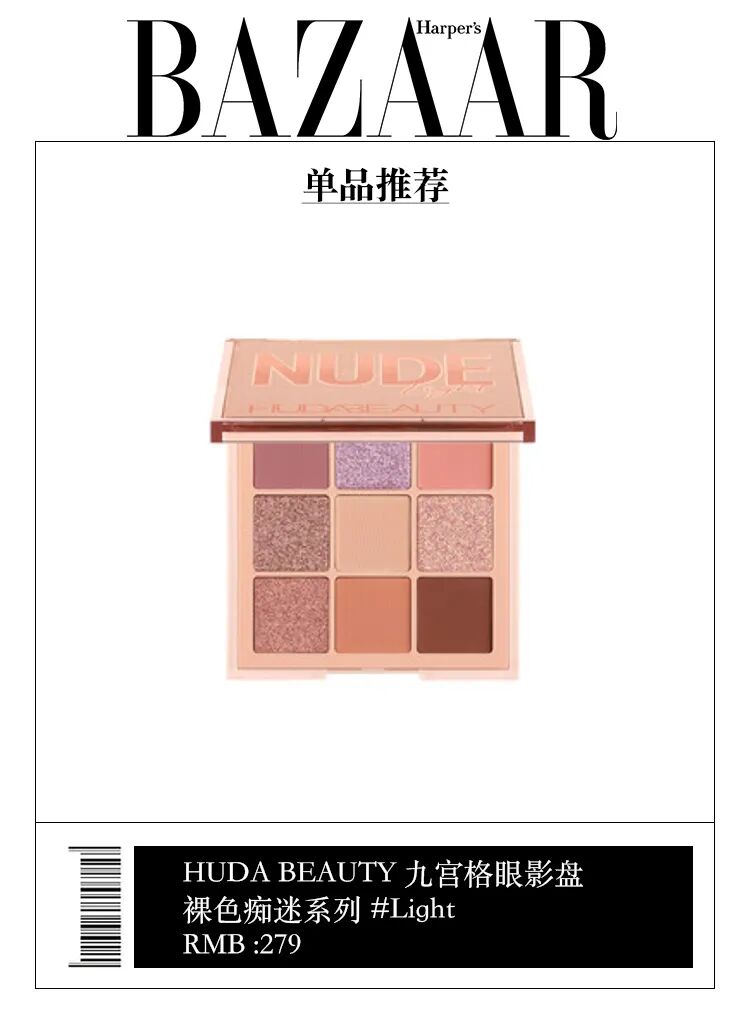 总而言之,面部色调尽量做减法,哪里留白控制好,气质也就上来了~HUDA BEAUTY的裸色痴迷系列九宫格眼影盘#Light色号,配色整体偏暖调,即便黄皮也无压力。主打裸色系、低饱和度的颜色,显色易晕染,从浅到深的哑光能够完成整套眼妆的晕染过渡用来打底再合适不过,而4种珠光闪片色的搭配刚好可以点缀出眼妆亮点。但切换到秋季,彩妆总归要来点不一样的,而面部的整体色调,就成为了营造秋日氛围感的决定因素。对于肤色偏黄调的亚洲肌肤来说,可以在低饱和度的基础上选择偏暖的色系。