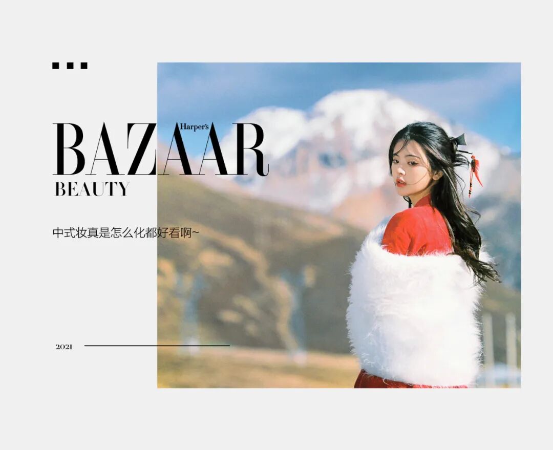 在动态无ps的效果下依旧颜值在线,妹妹莫不是掌握了什么美丽密码?就拿近期让人记忆最深的这组在高原拍的红衣古风照来说,在正片发出前,光靠着live花絮图就已经出圈不少。照片里在雪山脚下戏水的超越妹妹,有一种山的女儿的感觉,隔着屏幕都能被感染到的氛围感也是很绝了~这组图之所以这么出圈,一方面是妹妹颜值抗打,另一方面整个画面营造出的中式氛围感的确加分不少!想要Live图拍得好,那生图颜值绝对不能崩,而动态不能ps,妆容就起到了更重要的作用。其实最近几年随着国风兴起,不仅是国内,国外也有越来越多人开始了解中国的文化和审美,而好看的中式妆容这几年更是出圈。中式妆容自带的古典美感,一眼就能在其他妆容里区别开来,不用靠挑眉,气场都能妥妥拔高~而相比于单一的古风,如今改良版的中式妆容,更结合了当代女性的独立和个性,保留传统的同时又加以升华。不论你处于人生的哪个阶段,都能找到最适合自己的一种化法,那今天我们就来看看打造中式妆容最主要的几个要点~瓷感底妆一方面应了那句“乌发雪肤,唇红齿白”里对中式美人的印象,另一方面无瑕底妆也能够增加妆容的高级感。最近天气干冷,在上粉底前,一定要先用妆前乳产品做好打底,才能让后续妆容更加服帖。但选底妆产品跟护肤一样,都需要根据个人肤质来定制。这里油皮、混油皮可以选择带有一定控油效果或隐匿毛孔类型的妆前乳,而干皮可以把保湿作为重点。近期室内外温差、空气干冷等因素都很容易导致面部泛红的问题出现,我们还可以用绿色的妆前乳先行遮盖校色。记得以少量多次的手法来操作,这样既能够增加遮瑕力也兼顾了妆容的服帖度。重点部分的遮瑕一定不能丢,尤其是眼下这类面积大还影响气色的区域,有黑眼圈、泪沟等问题都需要单独用遮瑕进行二次遮盖。底妆的最后再铺上一层轻薄散粉,让妆面维持到偏哑光雾面的感觉,就可以更好地隐匿瑕疵啦~