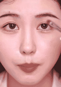 正视前方,卧蚕面积占眼睛宽度的一半或三分之二,用眉笔或卧蚕笔画到瞳孔外侧。