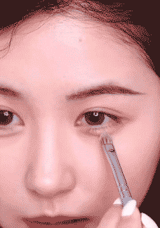 选用哑光提亮色,扫在卧蚕中央,再轻轻带到眼头和眼尾,避免火眼金睛的夸张感~