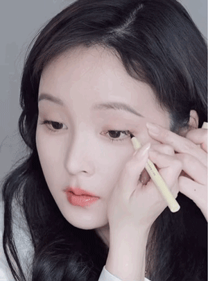 而是从眼角上方一点的睫毛根部开始画,这样就把眼线尾部抬高了,有助于让眼线避开泪液,持妆更久~