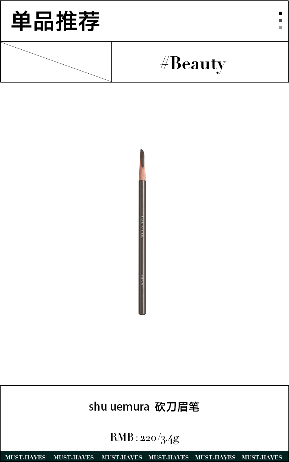 shu uemura砍刀眉笔是自然野生眉的天生完美搭档,拥有1mm极细刀锋,可以细致描绘毛流感,并且只在有油脂的皮肤上显色,反复描绘也不会有搓泥、掉渣的担忧,防水防汗防蹭脱~