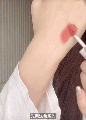 姐妹们不能忽略的还有嘴唇,浅色系简单打底,搭配唇刷晕染唇周,深色口红点在唇珠两侧和唇峰中间,在下唇画一个T字,晕染开后就是一个立体感满满的3D美唇!
