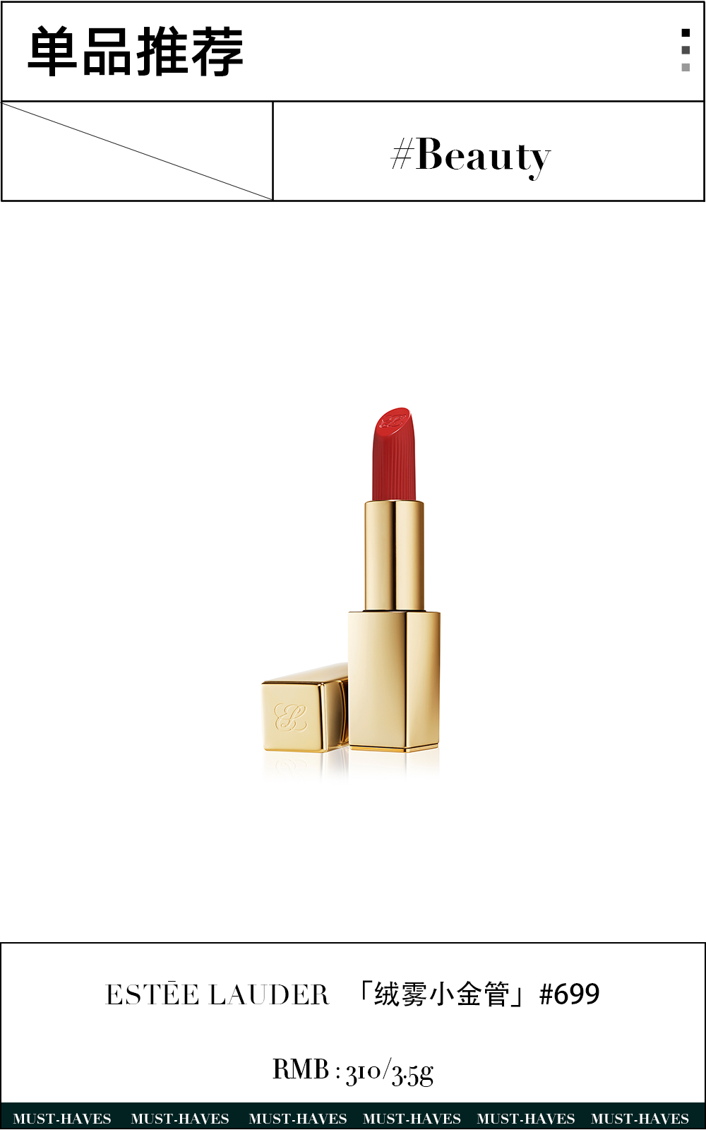 ESTĒE LAUDER 「绒雾小金管」是全新的绒雾质地,蕴含三重植物精粹的膏体不仅触感软糯细腻,上唇效果还是哑而不干的丰盈,高级感尽显!