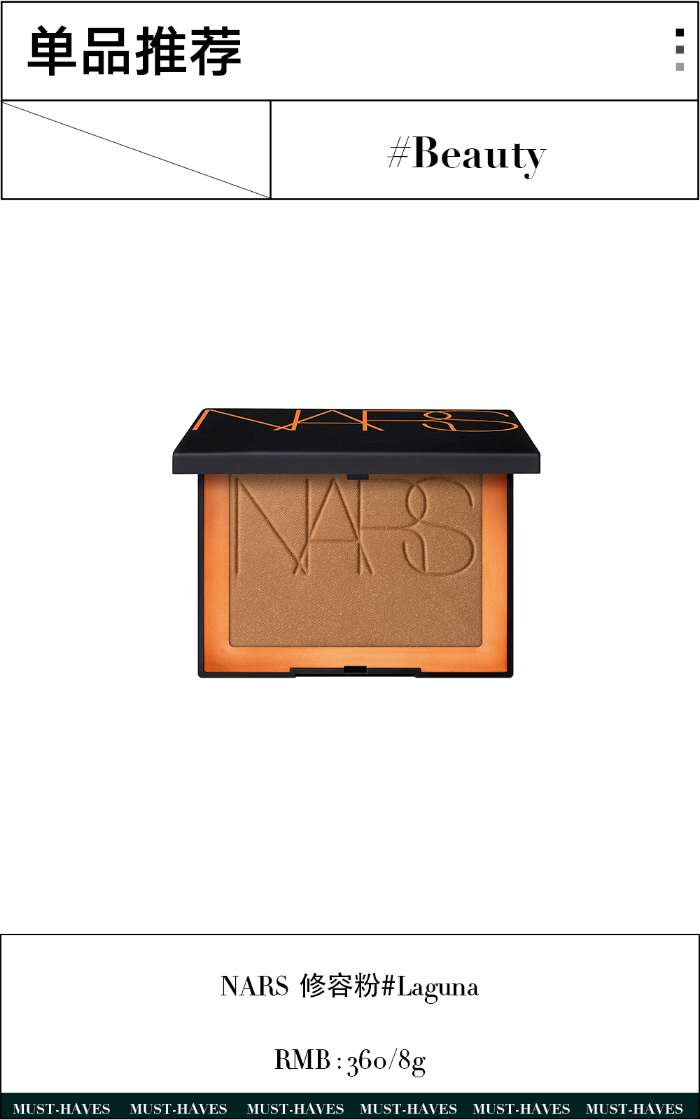 我们推荐:NARS 修容粉#Laguna是裸调的灰棕色,独特的暖光感无比适配亚洲肤色,粉质细腻好晕染,暗藏的柔和细闪更能自然地修饰五官,一抹get精致小脸。