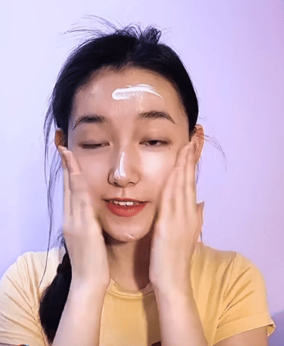 顺着一个方向涂开后,只要观察霜体与肤色的融合情况,三到五分钟左右不存在大量油光或者手指轻触不滑腻即为成膜。
