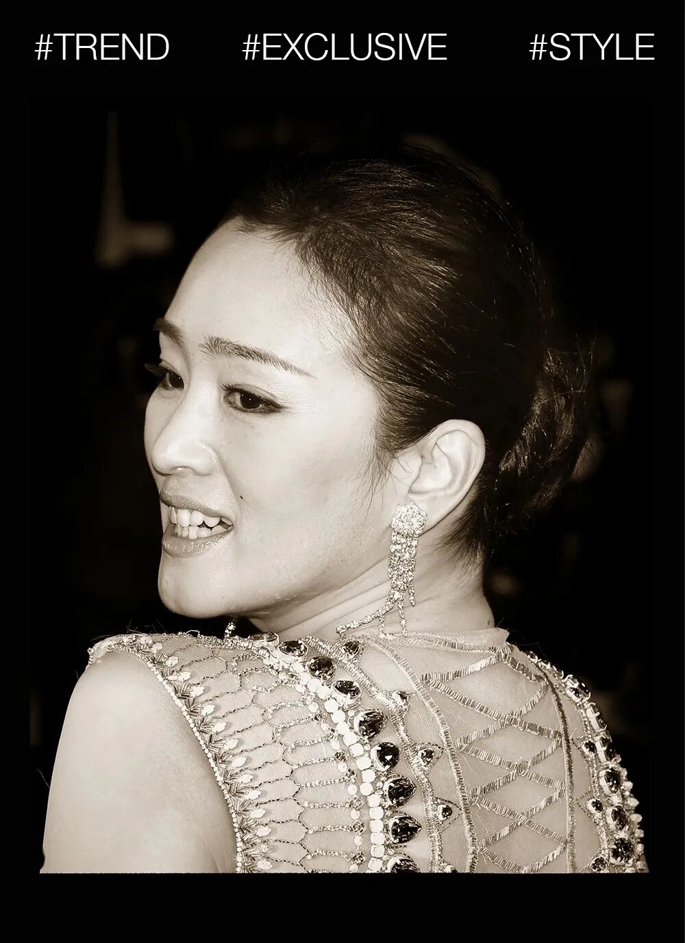 巩俐经常用浅色系口红搭配全包眼线将妆容重点放在脸的上部,因为红唇太过抢戏会让人忽略到眼神的气场。