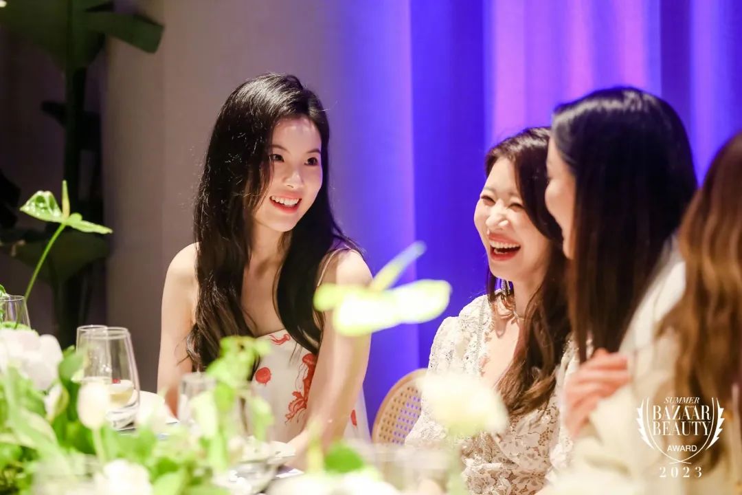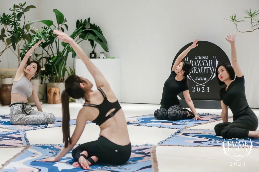 在活动上,《时尚芭莎》杂志社副社长、美容主编董刚也和大家分享了此次海滩美妆节发起的灵感和意义。今年是芭莎国际美妆盛典走过的第八个年头,这一次,我们秉承着一贯专业、严谨的态度,联合专业评委评选出2023芭莎国际美妆大奖获奖产品。夏季人气榜单包括护肤、彩妆和特别护理,承包一夏天的美妆指南一次性放送给你,快来查收~在海滩美妆节如此自由惬意的氛围中,怎么能不来一场独特的海边瑜伽&SPA体验呢?为了能够真正地提供一个放松下来,享受与交流的环境,由专业瑜伽老师和SPA老师为嘉宾们带来了一次舒适又疗愈的体验,收获一份独特的感受与记忆。而随着颁奖结束,活动也进入到了晚宴环节,错落有致且充满艺术感的活动场地,堪称是视觉和味觉的极致享受。在花艺点缀的长条桌上,摆满了丰富的食材,从菜单到餐具都根据海边环境进行制作,大家举起酒杯,畅谈微醺,尽享夏夜时光~放眼过去,活动现场也是群星耀眼,到场嘉宾有演员、歌手钟欣潼,演员、歌手蔡卓妍,歌手庆怜,演员林允,花样游泳世界冠军蒋文文、蒋婷婷和主持人李佳念。