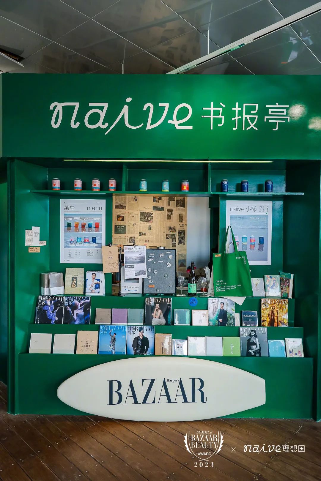 延续盛典氛围,带有阿那亚印记的快闪店也为大家准备好了,姐妹们可以去尽情打卡哦!此次活动空间由集书籍、咖啡、鸡尾酒、住宿为一体的多功能空间的naive理想国提供,能够让人体验到“日咖夜酒,住在海边”的奇妙感受。在这里,每一杯咖啡或酒都与一本书拥有同款姓名,咖啡、酒,各种食材融合之后呈现出的质感,就像不同的书带给人们的迥异的感受。5月16日~22日,作为naive理想国在海边的快闪店,naive书报亭“变身”为“追光邮局”,成为光继而传递光,将海边带给人们的美好感受传递出去。不仅书架上放着随手可翻阅的《时尚芭莎》杂志,同时芭莎还与naive理想国推出活动限定饮品海盐气泡水,湛蓝色的海盐气泡带着海洋的气息,气泡仿佛绵密的海浪,让美更恣意地流动。另有Photocall“BAZAAR 光影窗”等你来拍明星同款大片!反光材质让每一秒都是不同的光景,使用拍立得打卡拍照后可以当场邮寄,或给爱人或给挚友~除了拍美照外,法国科兰黎 x 《时尚芭莎》也打造了一个属于海滩美妆节的快闪装置,方便大家亲自感受抗氧1号VC精华的焕亮功效,化身追光女孩。