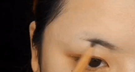 画好眉形框架后,根据眉毛走向用眉粉填充好空白,眉头处用棉签擦去多余的笔触,再取少量眉粉填充,营造眉头的晕染柔和感,最后用遮瑕处理眉毛边缘,干净简洁的弯月眉就画好啦~