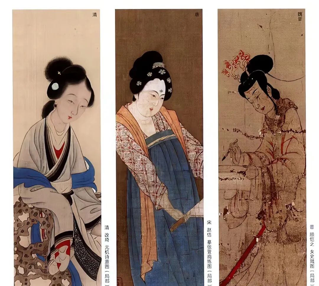 而女子们描画眉妆就如名家作画一般,在眉间轻轻画上几笔,或低或柔,浅浅淡淡,一对精美的眉形即出,对人的相貌起着画龙点睛的加分效果。眉间的这几笔朦胧,勾起的是我们关于中式美人的绮丽想象,尽显出古今千年的审美变迁和始终不变的审美情节。到了汉代,流行在蛾眉基础上改良而成的长眉,相对纤长而阔,名目十分繁多,其不同形制可以在仕女画中得以窥见一斑,如远山眉形状细长而舒展,轮廓如同眺望朦胧的远山,柳叶眉形如细柳,弯似剪刀,妩媚中带一份娇俏之感。cr.故宫博物院