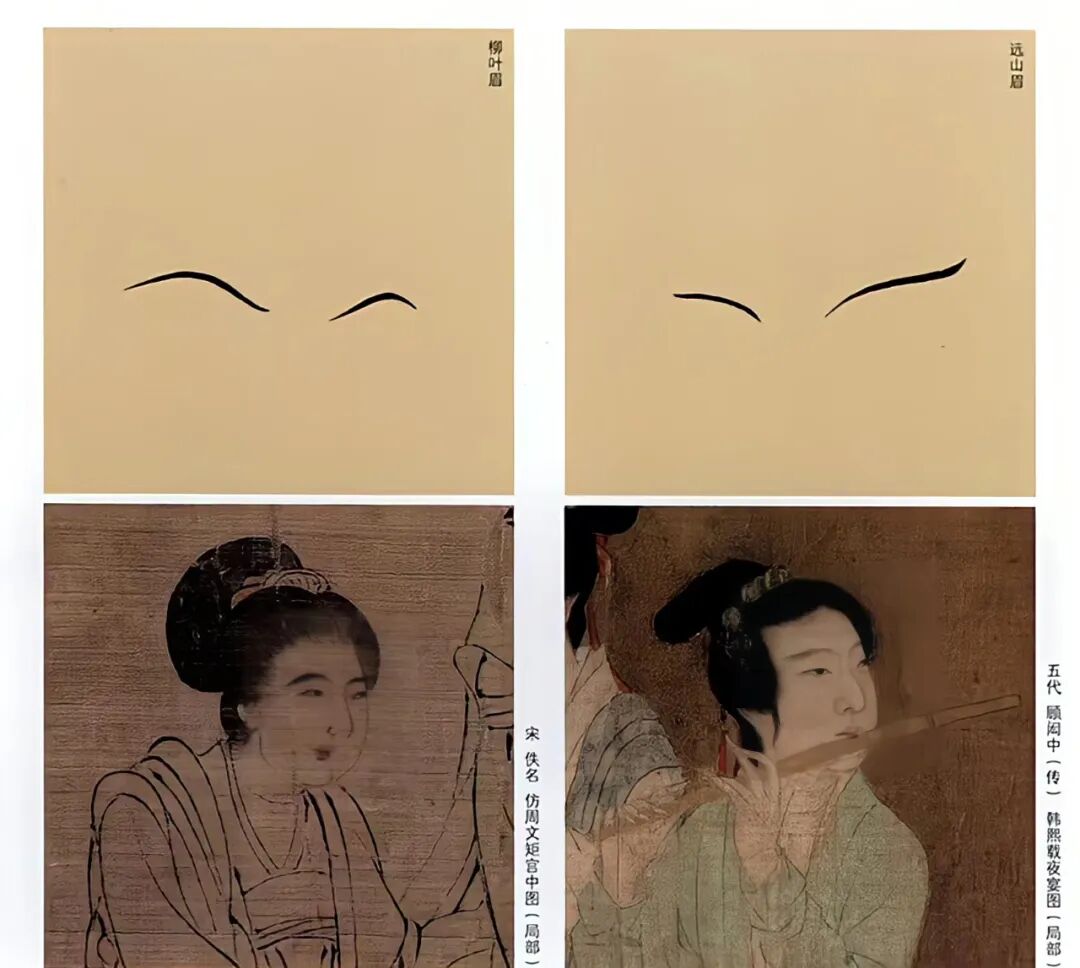 至于唐代,开放浪漫的时代氛围也渗入了眉妆这一细节中,令其,形制繁复精美,达到登峰造极的地步,其间流行的眉形以为长、细、淡为主,柳叶眉和远山眉、青黛眉等众多眉形呈百花齐放争奇斗艳之势。宋元两代,审美回归朴素淡雅之风,纤细修长的眉妆此时仍是女子眉妆的主流,此后的明清两代便一直延续着纤细弯曲的眉形。如今中式美学逐渐深入人心,基于古典眉形改良而成的新中式细眉也越来越受大家偏爱,形似月牙,弯似柳叶,一抹细眉中式美感十足。东方美人有了新中式眉的加持,尽显出婉约知性的绝色气质,几款简约不失中式韵味的细眉十分值得借鉴~远山黛眉:以山喻眉,黛色朦胧,眉妆上下虚实交融,这弯远山黛眉姿态温润雅慵,可以视觉上拉大眉眼间距、上提眉毛,想打造中式氛围感的方圆脸姐妹不妨试试看。