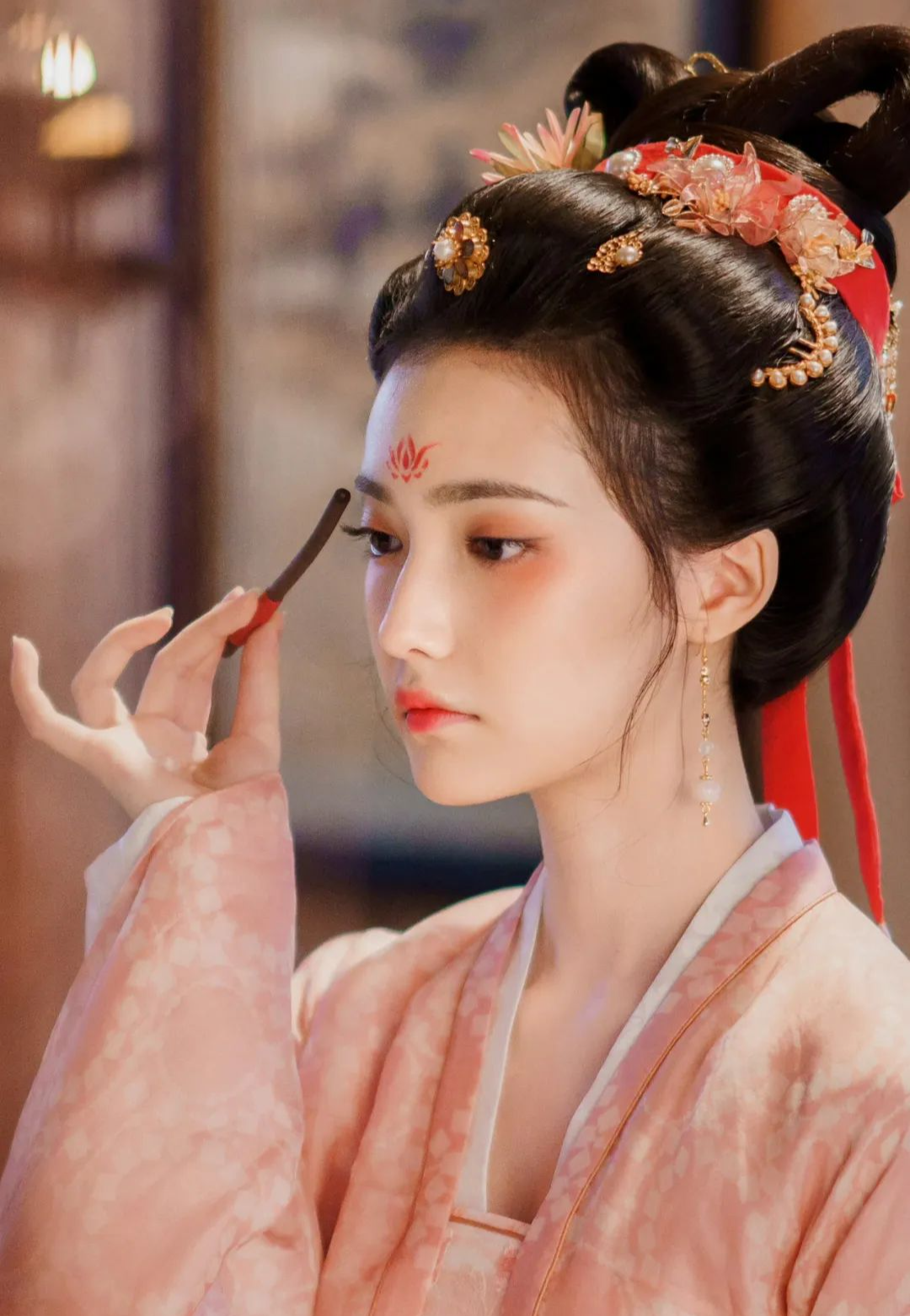 这样细细看来,点绛唇妆与时下十分流行的咬唇妆有着神似之处,没想到老祖宗的审美这么超前~唇间红晕渐染,咬唇妆继承了点绛唇的精髓并加以改良,为含蓄雅致的古典情调注入现代审美风格。