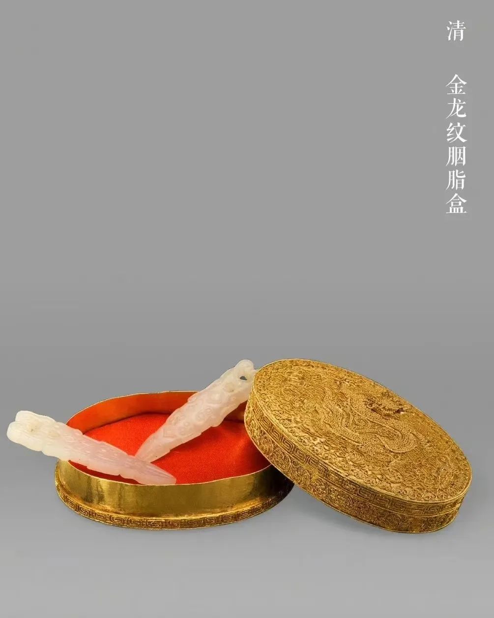 唇脂轻浅描画,或浓或淡,皆能把中式传统的唇妆演绎得如此精彩,沉淀千年后在今天仍然历久弥新,散发出浓郁的古典中式美,不妨一同走进古典唇妆,领略这抹古典红的独特魅力吧~北宋秦观在《南歌子》中歌道:“香墨弯弯画,燕脂淡淡匀,揉蓝衫子杏黄裙,独倚玉阑,无语点檀唇。”这里描摹的便是历来深受女子们喜爱的唇妆样式——点绛唇。点绛,顾名思义便是点红色,上唇只在内侧有稍微的延展甚至不涂,只涂下嘴唇中间一点点,使唇部呈“上唇小、下唇大”的形状晕开,其余部分用妆粉装饰。在妆面中,与技法相生相伴,起画龙点睛作用的便是“唇脂”,汉代《释名》中解释:“唇脂,以丹作之,像唇赤也。”由此可见,最初的唇膏是以丹砂(即朱砂)为原料,用来模仿和修饰嘴唇天然的红润色泽。我们耳熟能详的点绛唇,晋代就十分流行,晋代崔豹《古今注》载:“今人以重绛为胭脂,非胭脂花所染也,胭脂花所染,自为红蓝尔。”此时人们用紫草作为染色剂制作绛色唇脂,描画钟情的点绛唇妆。至于清代,宫女们往往用胭脂将上唇涂满,或者略有削减,下唇则仅仅点染中部如樱桃一颗,还有在上下唇中间点一下的,呈花瓣形。