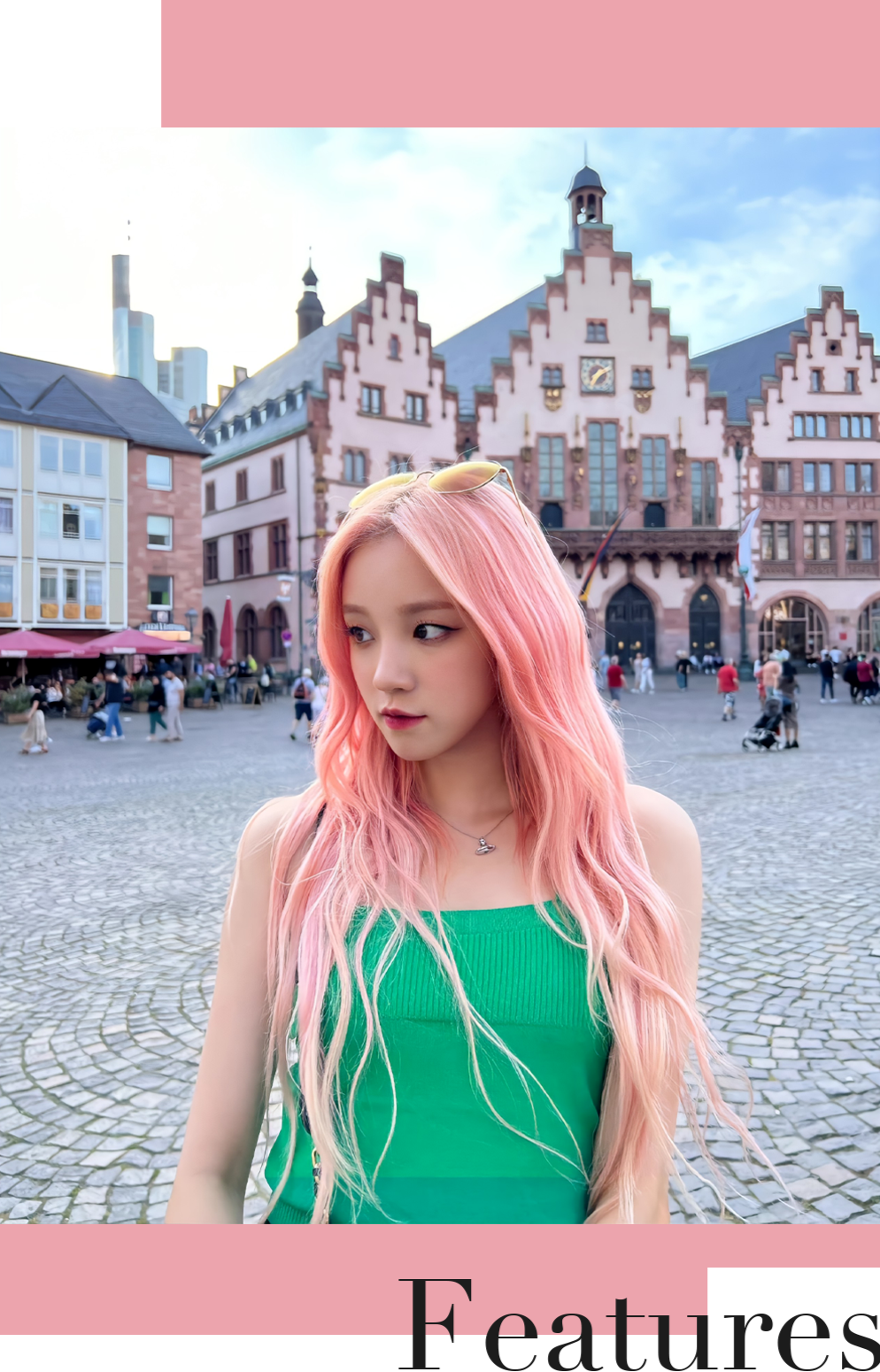 芭比的粉发也为我们发色选择提供了new idea,粉色作为膨胀色,本身会转移视觉中心,减弱面部的线条感,从而修饰脸形,让面部视觉上更加流畅哦!