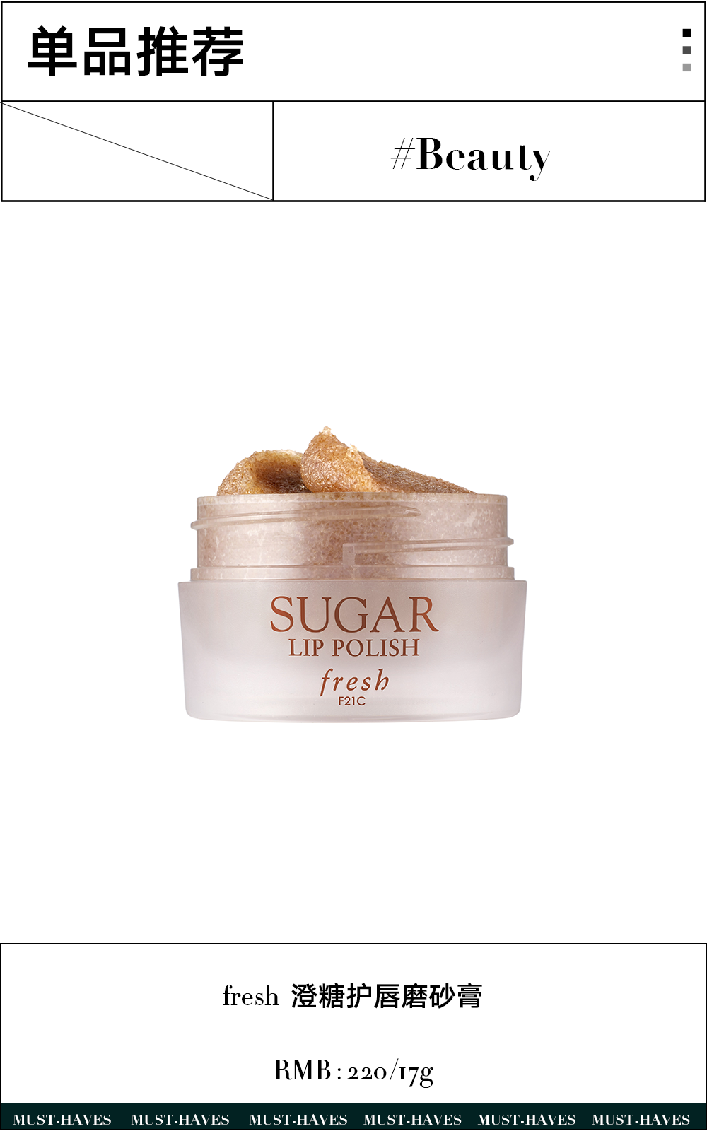 我们推荐:fresh 澄糖护唇磨砂霜打开是棕色的糖晶,不仅轻柔地去除角质,还是天然的保湿剂,再加上极具滋润感的乳木果油和希蒙得木油,为皮肤持久提供营养,增加弹性,如丝绒般柔软。继蛋形香水后,TAMBURINS又推出了可爱的蛋形唇膏,添加了丰富的植物油,上嘴润润的不油腻,最受欢迎的玫瑰木香,是细腻温柔的玫瑰雨葡萄柚的柑橘调和乳香的辛辣交织在一起,给人温暖柔软的舒适感。