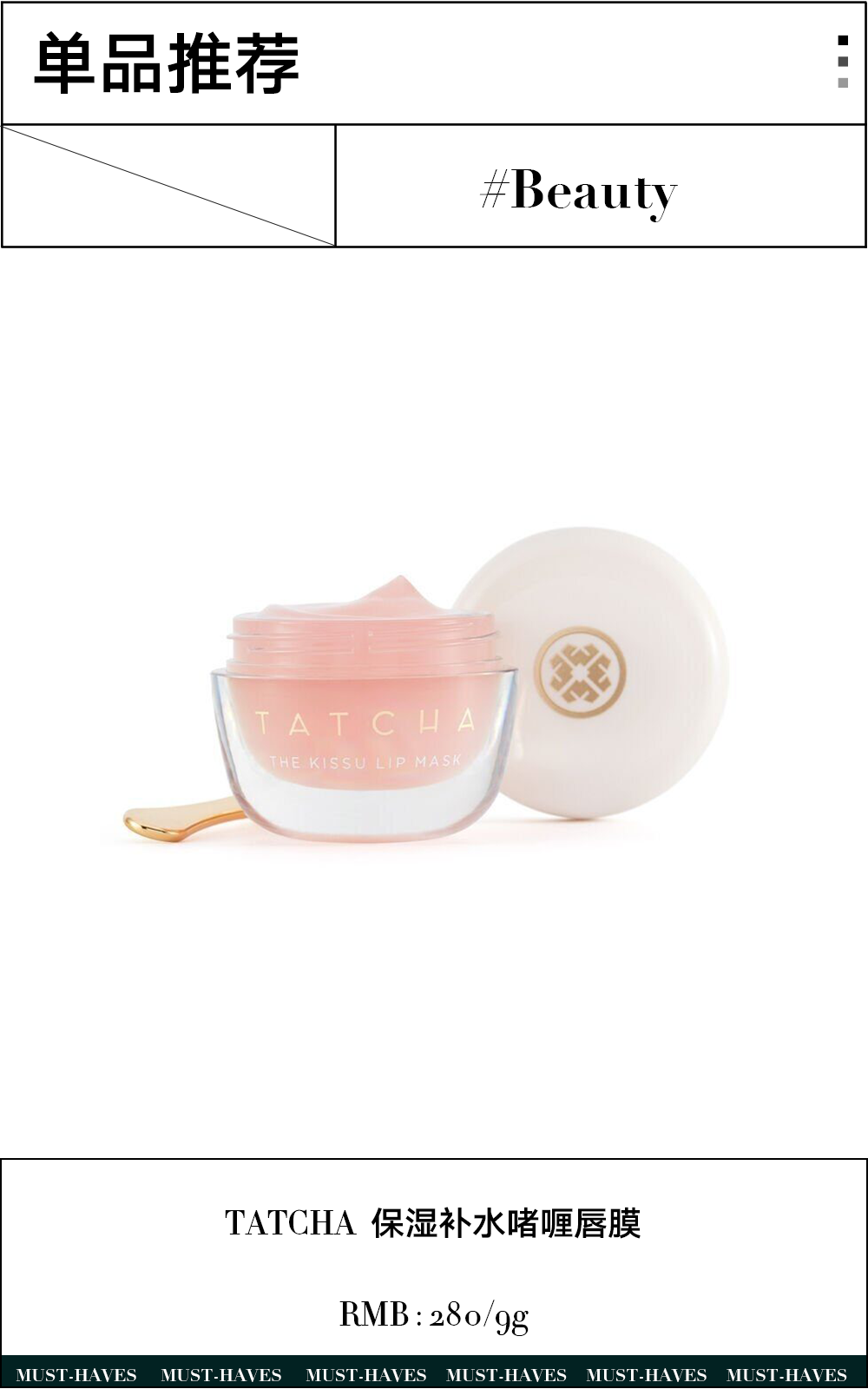 想要润唇口红二合一的同学,BYREDO润唇膏是个不错的选择,灰色曲线金属外壳造型感十足,以天然植物配方呵护滋润双唇,推出了三个日常百搭的色号,一抹上嘴,元气妆感就有啦~TATCHA 啫喱唇膜满满的馥郁桃香,融合了白桃、角鲨烷、山茶油以及保护功效的三朵玫瑰提取物(蔷薇),果冻配方擦一擦会变丰盈的液态护唇膜,持久补水,带来平滑饱满的双唇。我们吃饭喝水还有变美都离不开嘴唇,别再放任唇部问题不管啦,每天只需要花一点点时间温和护理不伤嘴,一起来做精致无死角的美少女吧~©版权声明:时尚芭莎网编辑时尚芭莎,本文系时尚芭莎网独家原创,如需转载请注明出处。