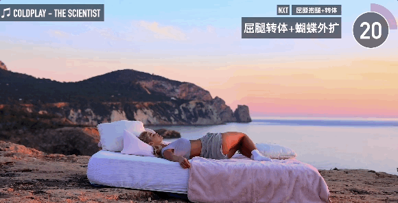 用靠枕代替也可以,不仅上班必备,午休小憩也能用得到,还适用于开车的时候~还有,我们坐下来后双脚分担身体的重量,腿部极容易血液循环不畅,导致浮肿,所以一定要踩个脚踏凳或箱子!不管是为了促进血液循环还是身体健康着想,即使姿势再正确,还是要设法间歇性起身活动,放松全身和缓解眼疲劳一举两得。当然,动起来不局限在走动,建议久坐族们平时多做拉伸运动,最简单的是晨起或睡前做拉伸放松训练。STEP 1:身体平躺,双腿屈膝向左右两侧来回转体再蝴蝶外扩,上半身保持不动,坚持25秒。STEP 2:单腿屈膝,双手抱住膝盖做转体动作,双腿交替进行,同样25秒。