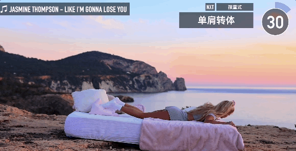 另外,肩膀放松下沉,充分感受胸腔被打开,背部肌肉自然夹紧,同时记得收腹,放松并提升腰腹部的力量,我们的口号是拒绝脂肪囤积!