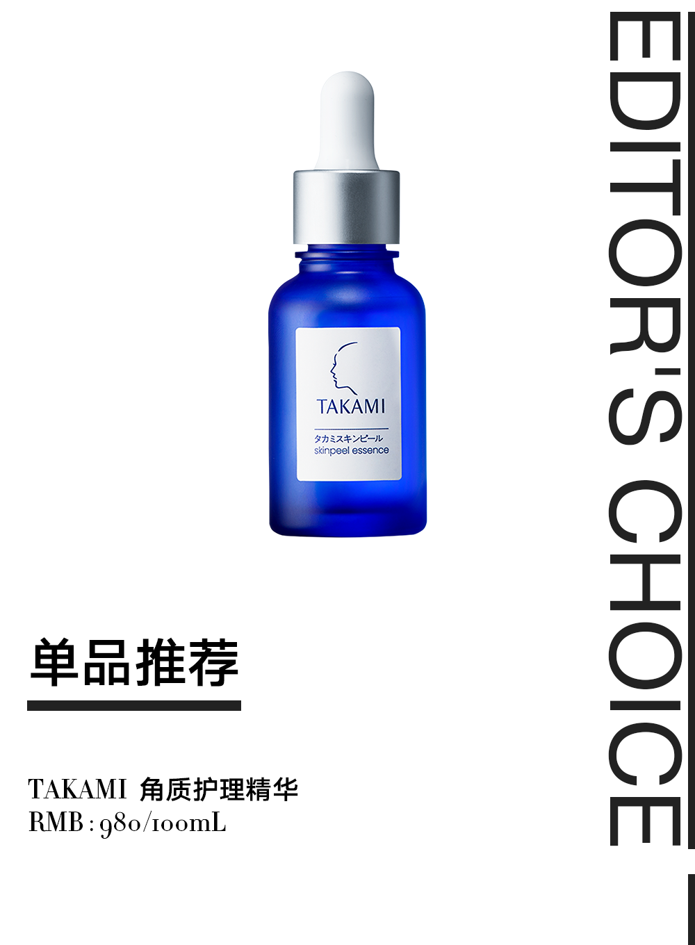 TAKAMI 角质修复精华秉承26年的院线经验,将其融入日常护肤,通过角质焕肤科技精准作用于我们的角质层,协同7种果萃类酶,配方极简,温和代谢角质,实现皮肤的透、嫩、滑,很适合在换季时期或皮肤感到粗糙暗沉时使用。
