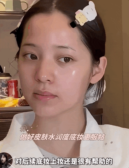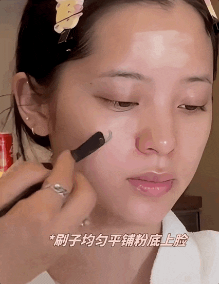 先涂滋润型的面霜,再选水润型粉底/水光气垫,用刷子薄薄铺一层,用粉扑拍“进”皮肤里。