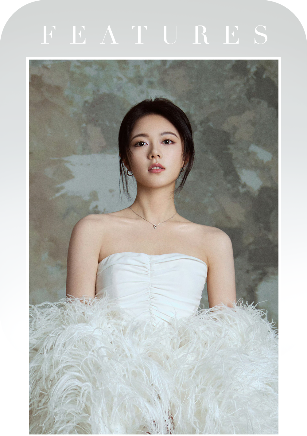 肌肤冷白通透到发光,肤感像刚落的新雪,透着薄霜般的清冽柔光,和温暖复古的穿搭相呼应,好一个矜贵柔美的富家千金范儿~