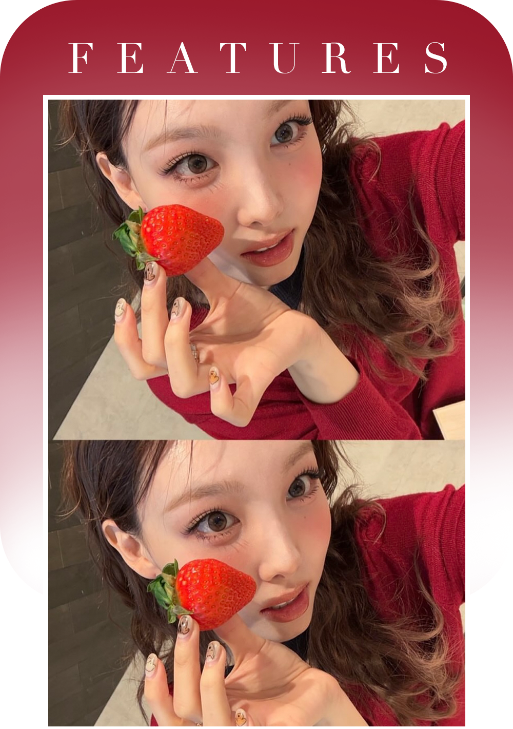 唇妆则换成果冻质地来“解糖”,自带小灯泡的打光效果,奶茶粉、浆果色都是不错的选择哦!
