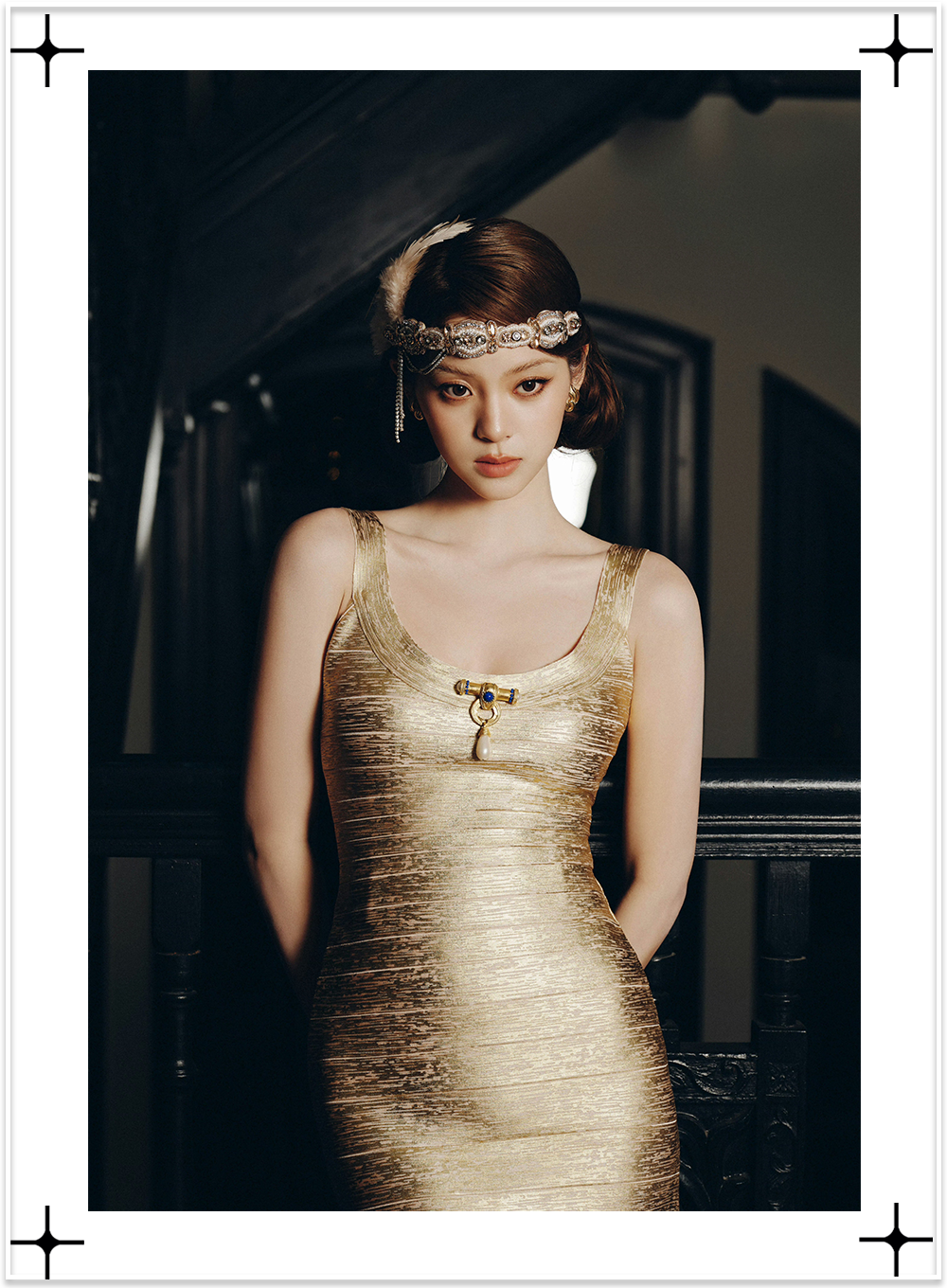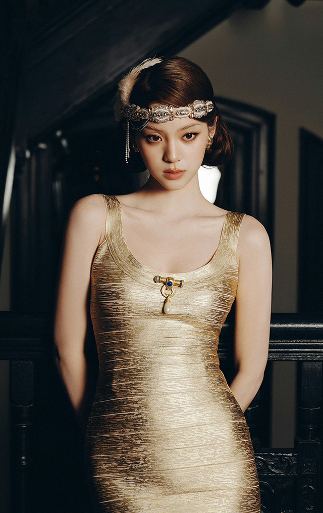 最近,娜比身着一袭鎏金复古礼裙惊艳亮相品牌点灯活动,完美复刻了电影《了不起的盖茨比》中的黛比,真·让人眼前一亮。