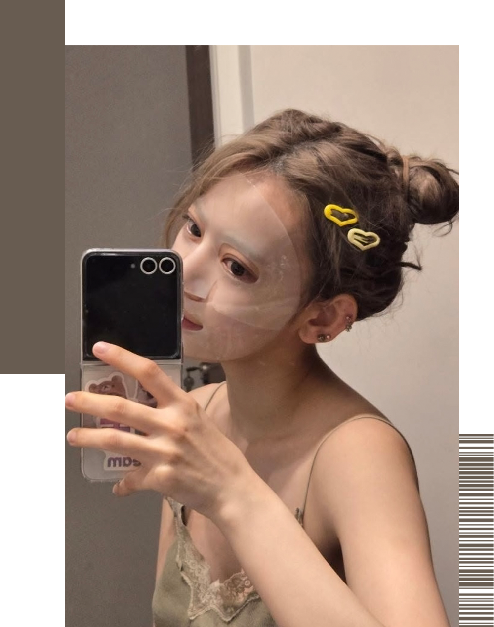 冷调中的蓝、紫、灰等色素,会中和掉肤色里的黄气,让肤色看起来更白皙、更通透,仿佛给皮肤加了一层“磨皮滤镜”。