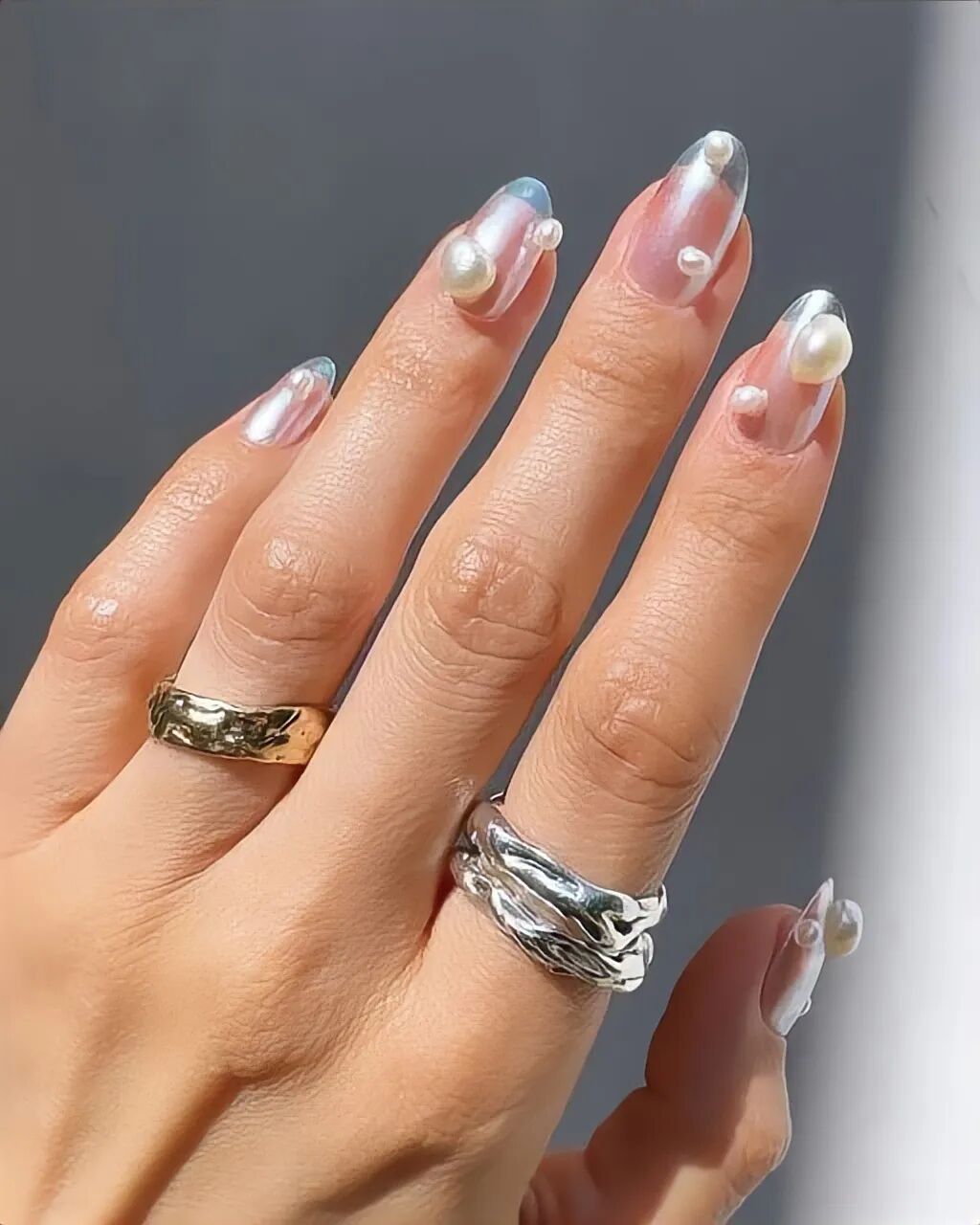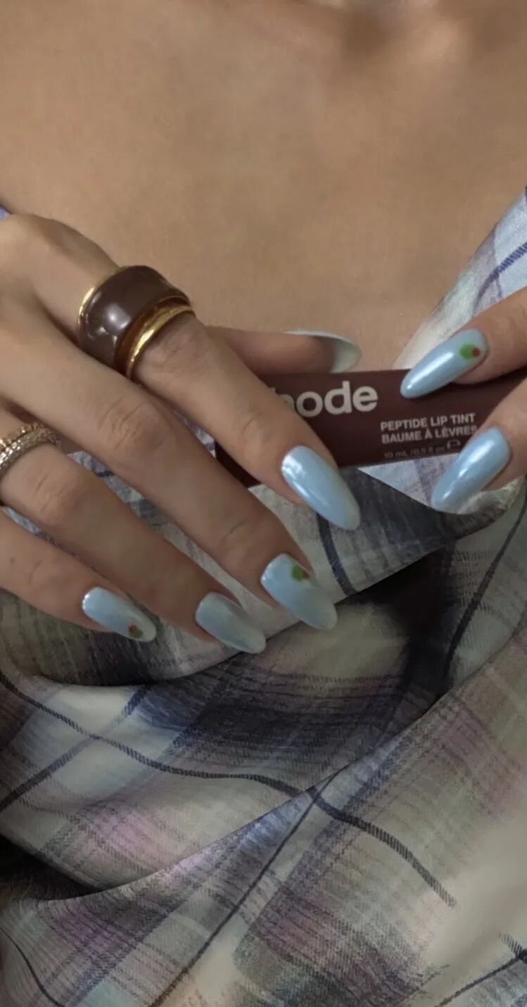 比如透绿、淡水蓝美甲搭配银色首饰,