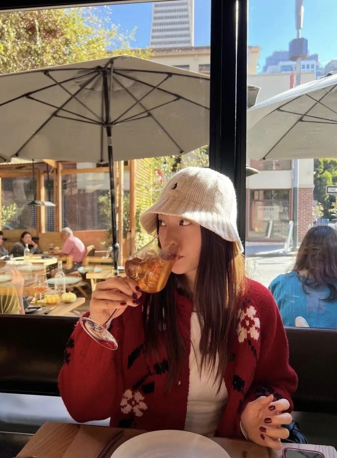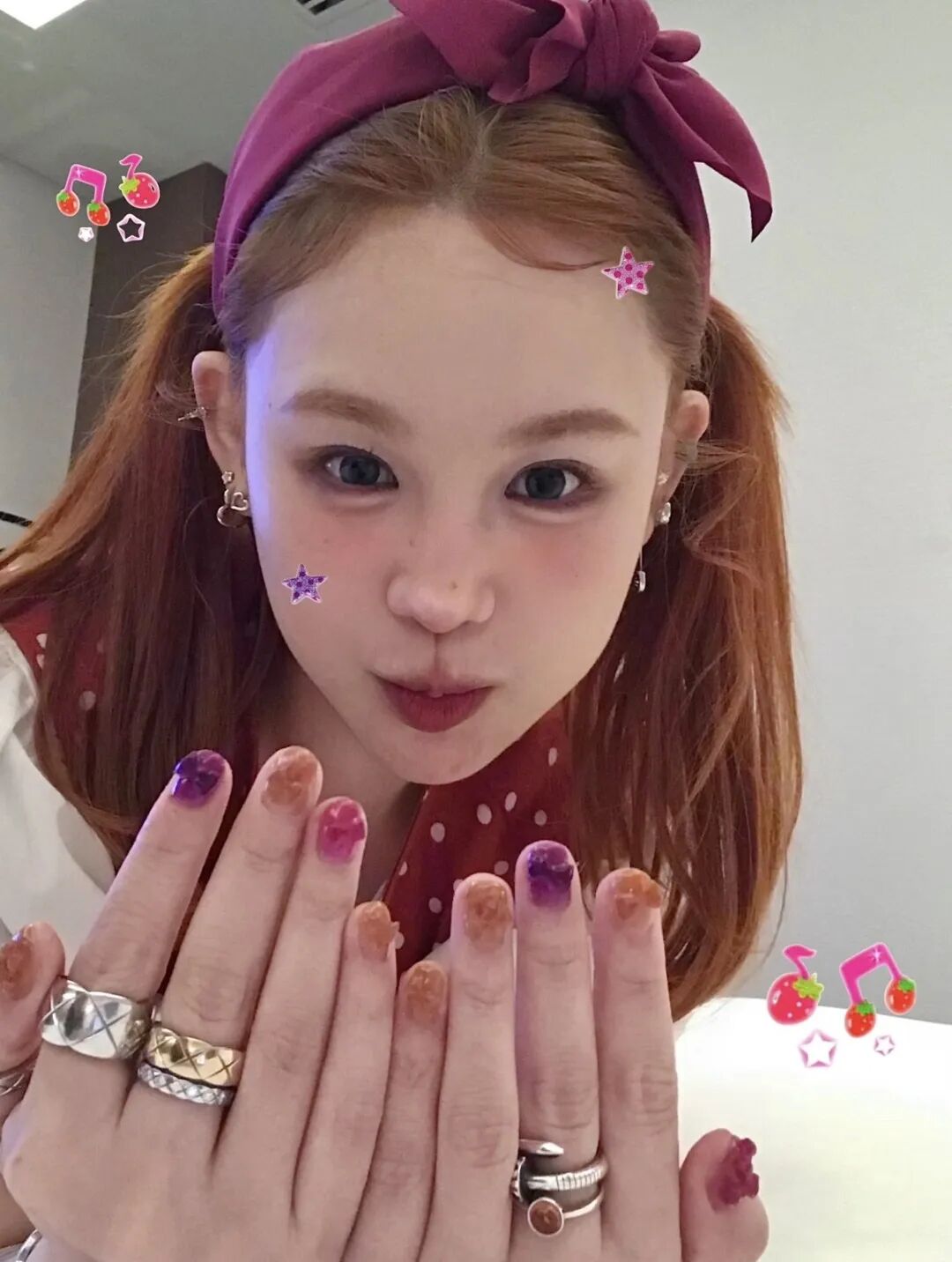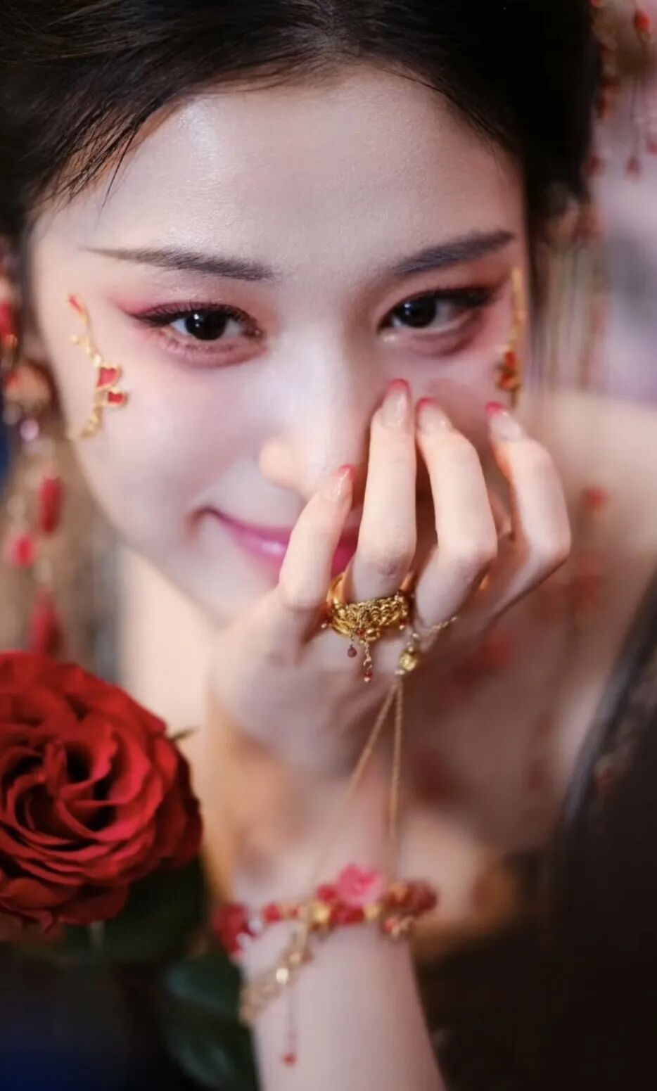 庾晚音严选红色指尖渐变美甲、