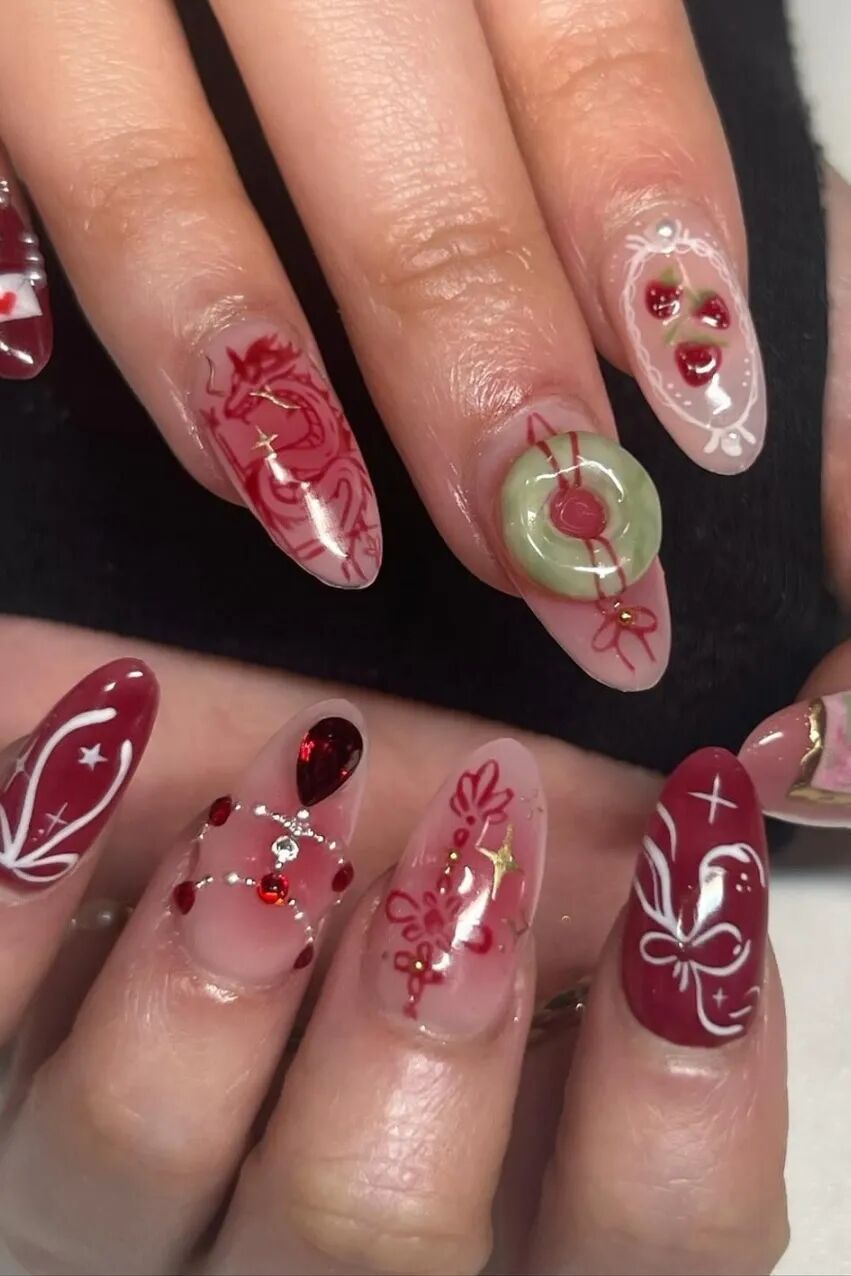 古装融合现代巧思的美甲,